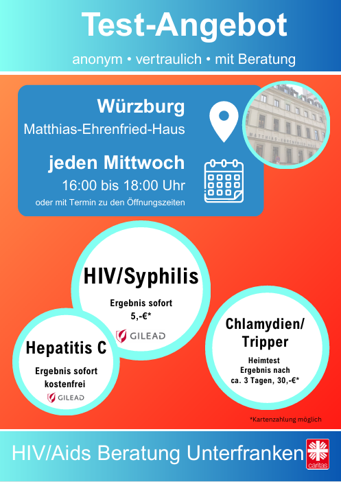 Aktuelle Informationen zu den Testangeboten findest du unter: HIV-/Aidsberatung Unterfranken